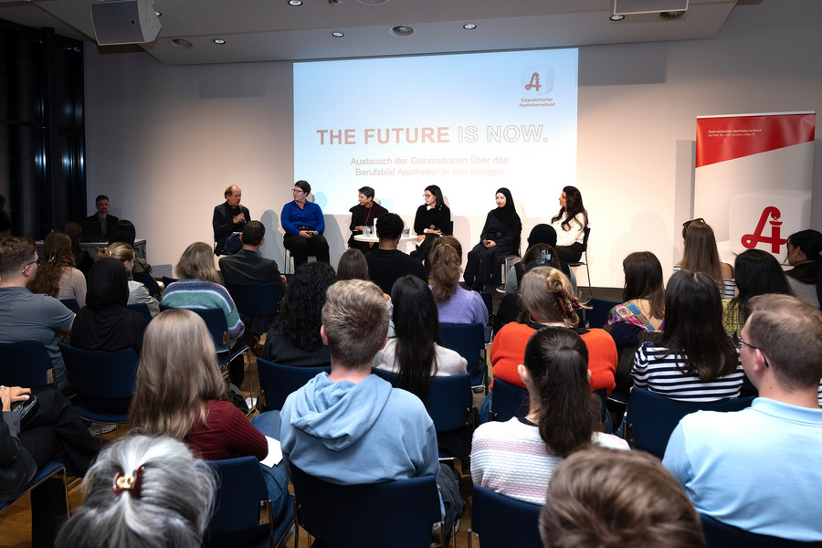Der Österreichische Apothekerverband lud im Rahmen der Personalkampagne unter dem Motto „The future is now. Das Berufsbild Apotheker:in fit für die Zukunft machen“ in Innsbruck zu einem Austausch der Generationen. Rund 90 angehende und erfahrene Apotheker:innen, Pharmazie-Studierende und Vertreter der Universität Innsbruck diskutierten angeregt über zukünftige Entwicklungen, Chancen und Potentiale des Studiums und des Apotheker:innenberufs. ÖAZ-Artikel "APO+THEKE"